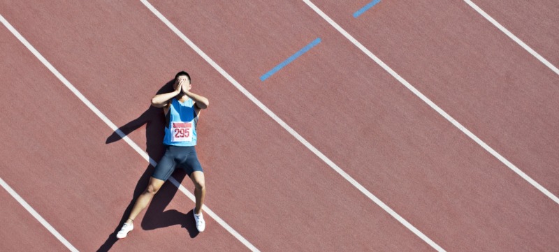 iemand baalt na een tegenslag van verlies na een hardloopwedstrijd